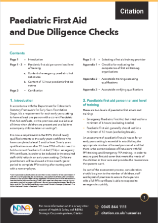 This factsheet from Citation on Paediatric First Aid and Due Diligence Checks explores: