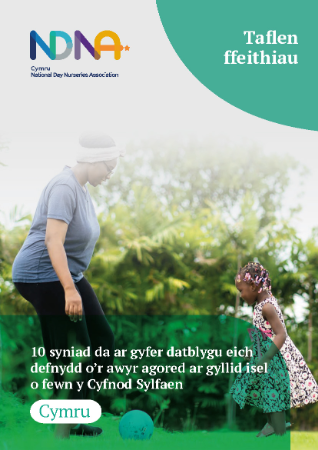 Mae’r daflen ffeithiau hon yn cynnwys 10 awgrym da a syniadau ar sut i fynd ati iddatblygu eich darpariaeth awyr agored o fewn ychydig o gamau hawdd, gan gynnwys yrholl randdeiliaid yn y broses i sicrhau perchnogaeth i’r plant, staff a theuluoedd sy’ngysylltiedig a’ch lleoliad.